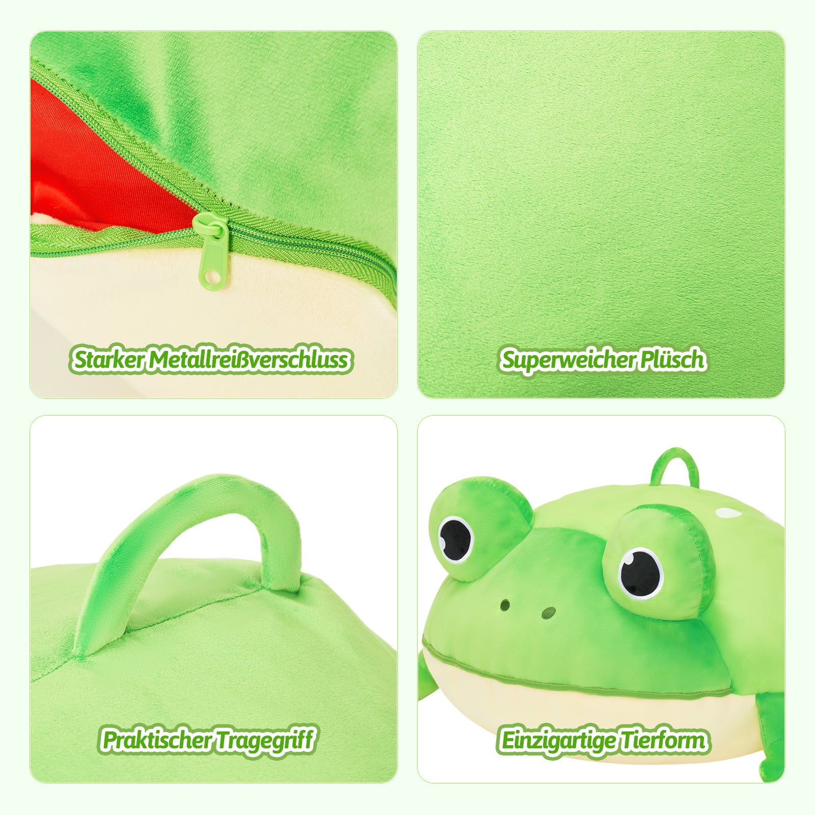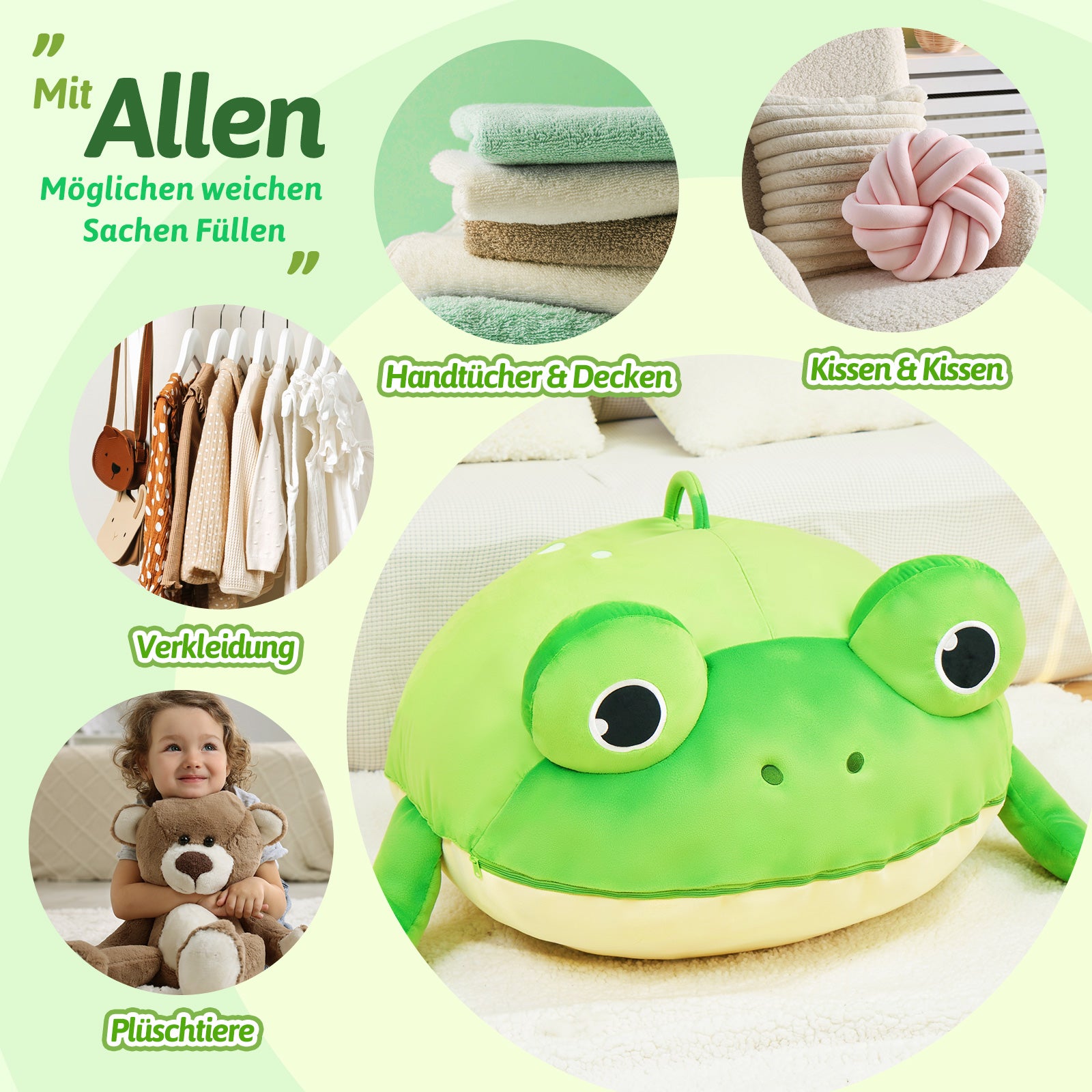 Dieser Aufbewahrungssitzsack für Kinder mit Tier- und Froschmotiv eignet sich hervorragend zur Förderung der praktischen Aufbewahrungsfähigkeiten von Kindern. Nach dem Befüllen mit weichen Steppdecken kann er auch als niedliche Plüschdekoration verwendet werden.